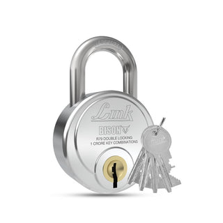 Link Bison 79mm Heavy Duty Padlock | Lock for Home Door, Office, Shop, Travel | Tough CR Body | Hardened Steel Shackle, | Double Locking System | High Precision 4 Keys | 10 Million Key Combinations