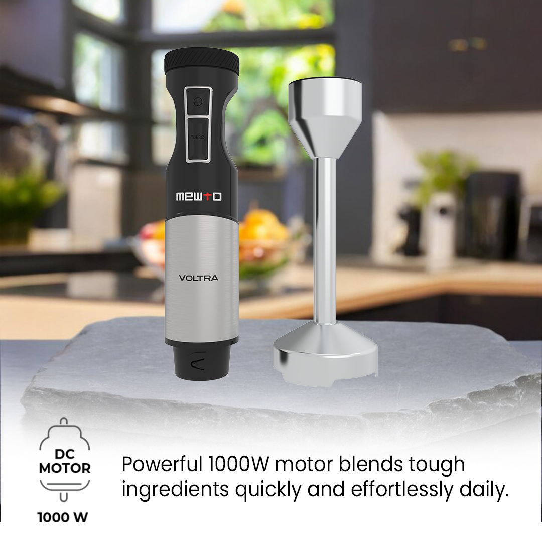 Mewto Voltra Hand Blender 1000W | Powerful DC Motor | Silent Operation | High-Grade Stainless-Steel Blade