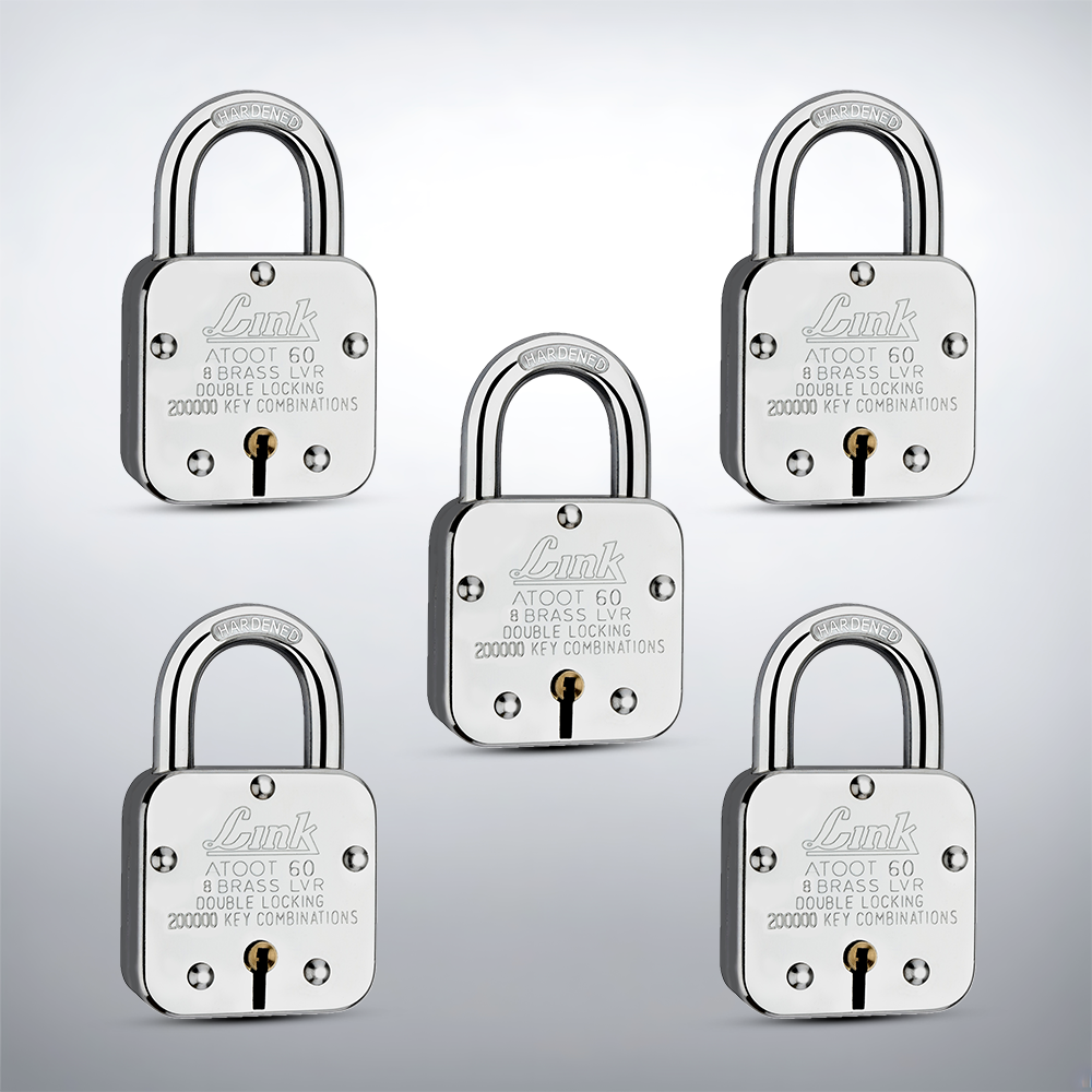 Link Atoot 60MM Padlocks 5Pcs Set | 2 Lakhs Key Combinations | Steel Body | Hardened Shackle | 8 Brass Levers | Made in India | 3 Keys for Each Padlock