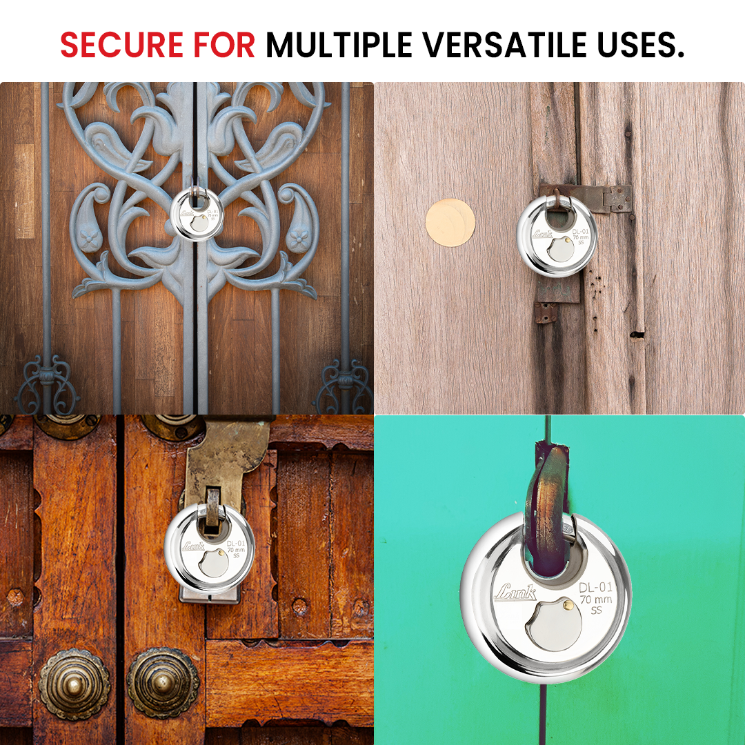 Link Disc Lock 70MM Padlocks Pack of 1 | Stainless Steel Body | Hardened Shackle | 3 Silver Keys with Hi-Tech Nickle | Made in India | 3 Kyes for Each Padlock