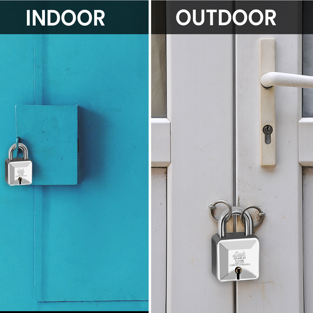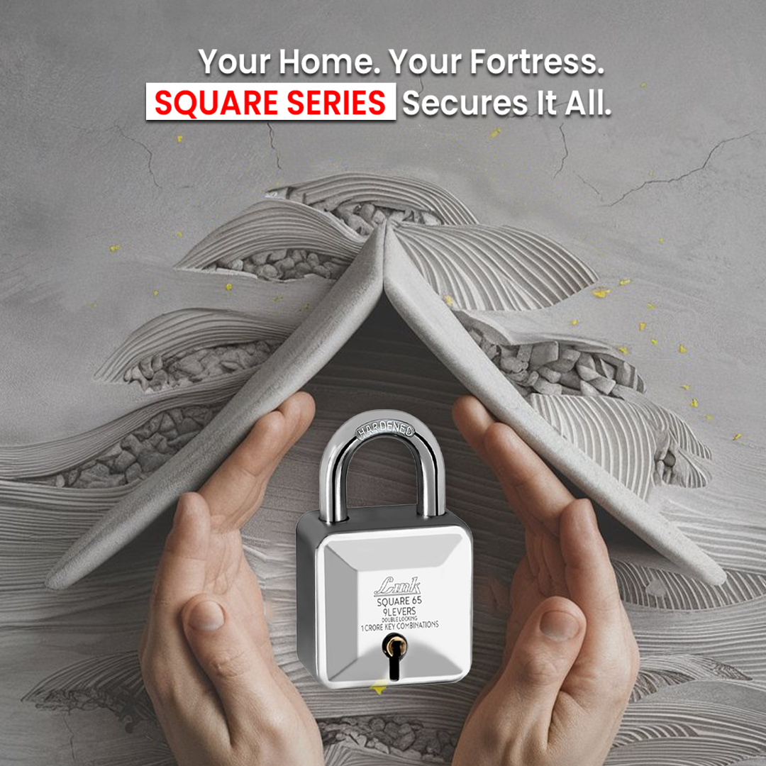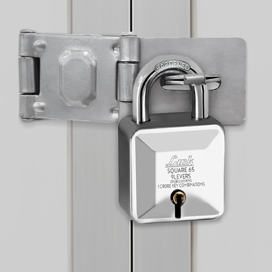 Link Square 65MM Diamond Cut Patented Design Padlock | 9 levers | Double Locking | 1 Cr Key Combinations | Hardened Shackle | Solid Steel Body with 3 Keys | 10 Years Warranty