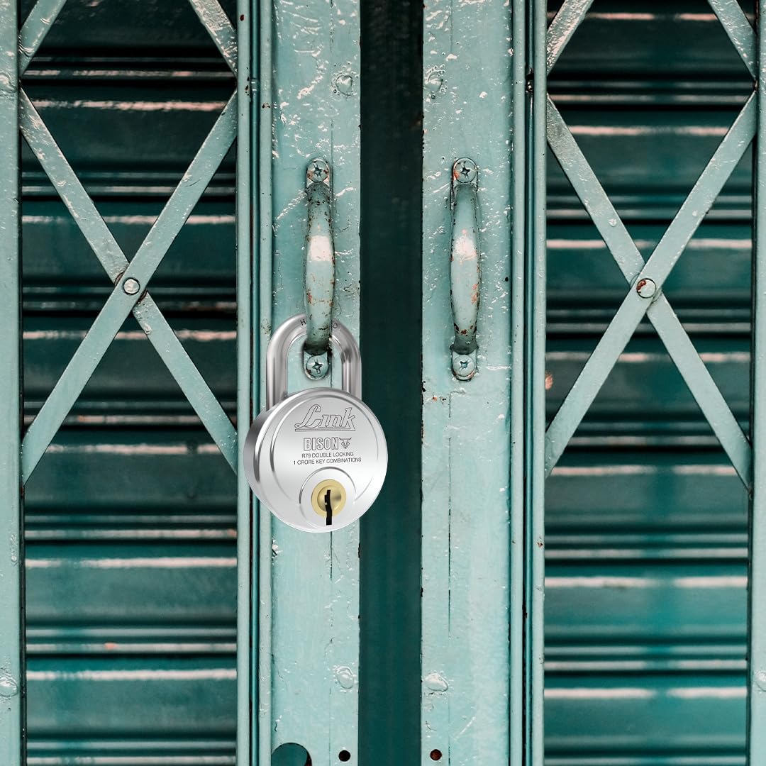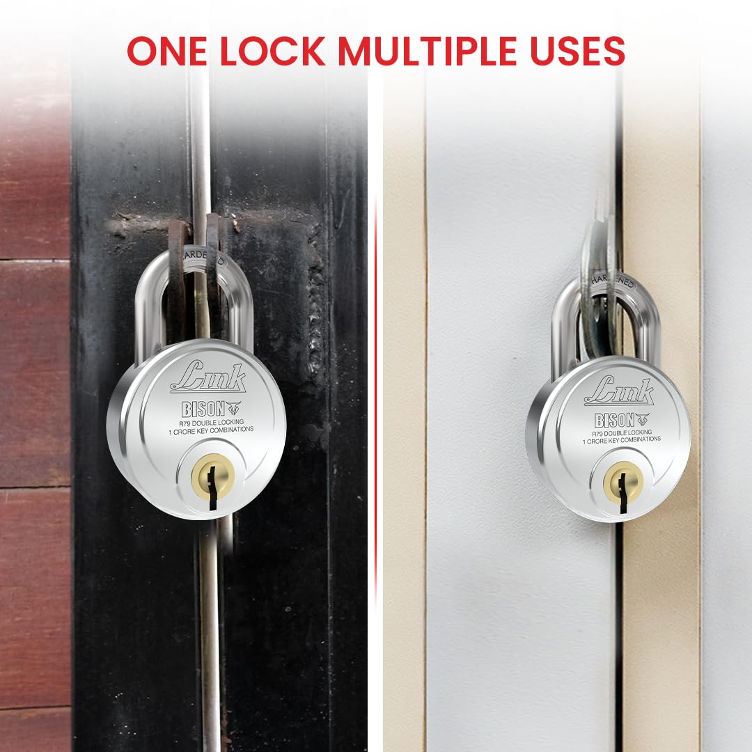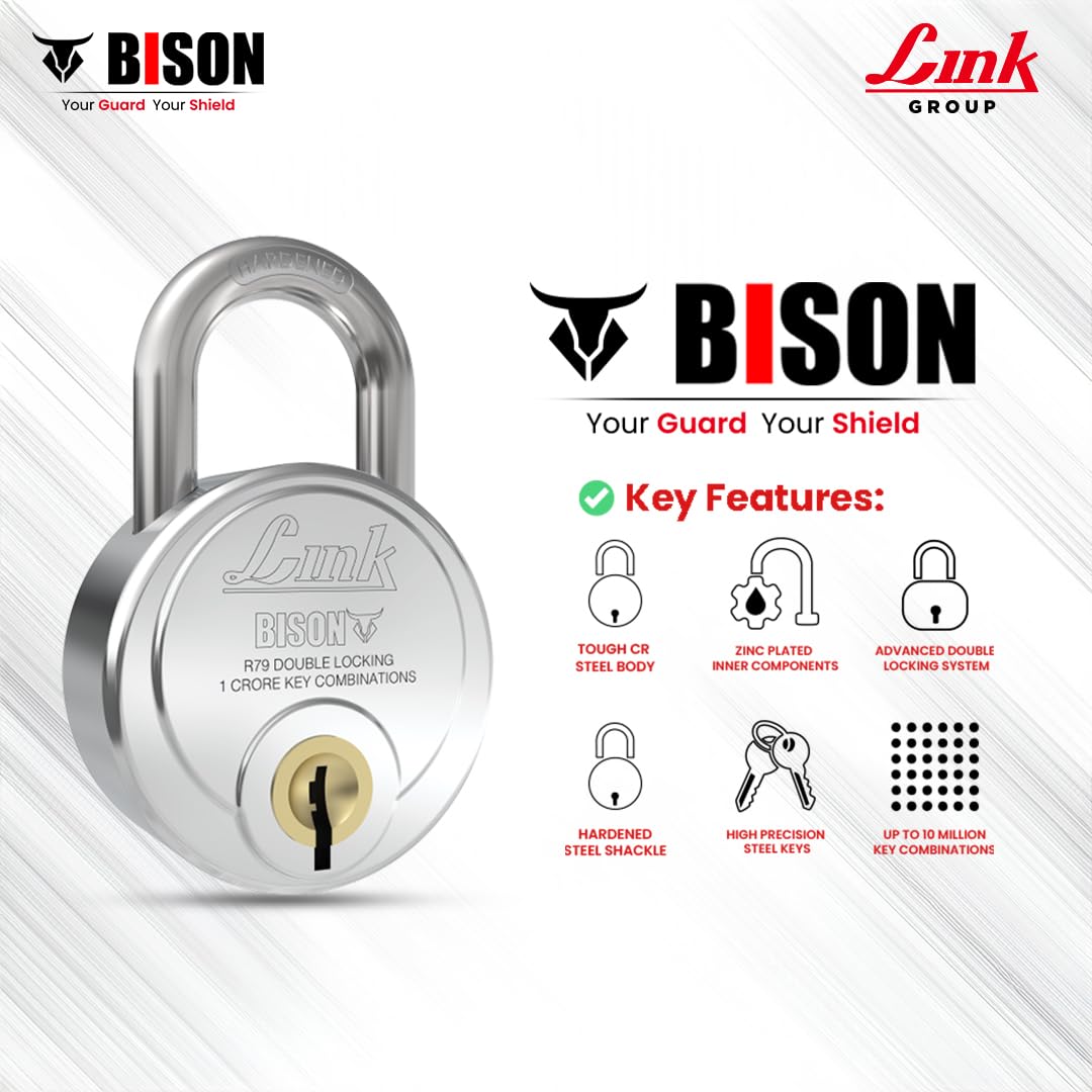 Link Bison 79mm Heavy Duty Padlock | Lock for Home Door, Office, Shop, Travel | Tough CR Body | Hardened Steel Shackle, | Double Locking System | High Precision 4 Keys | 10 Million Key Combinations