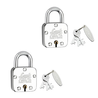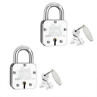 Link Atoot 55MM Lock | 2 Lakhs Key Combinations | Steel Body | Hardened Shackle | 8 Brass Levers | Made in India |Each Padlock with 3 Silver Keys and Free Key Chain (Pack of 2)