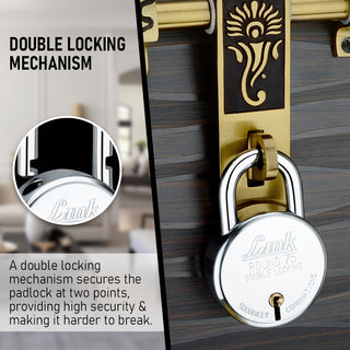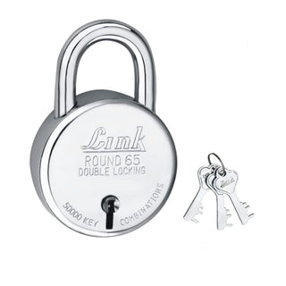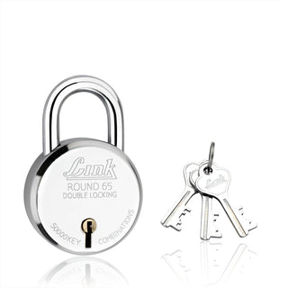 Link New Round 65MM Padlock Steel Body Iron Lever Double Locking 3 Silver Keys 1 Lock Made In India