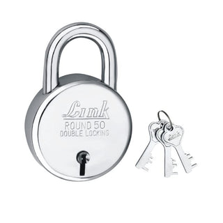 Link New Round 50MM Lock | Steel Body | Iron Lever | Double Locking | 50,000 Key Combinations 3 Silver Keys for Each Padlocks (Pack of 1)