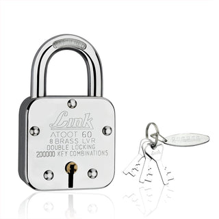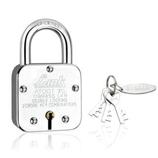 Link Atoot 75MM Lock Pack of 2 | 2 Crore Key Combinations | Stainless Steel Body | Hardened Shackle | 10 Brass Lever | Made in India | Each Padlock with 3 Silver Key