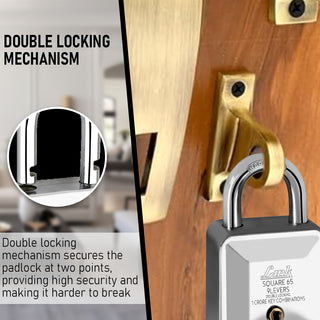 Link Square 65MM Diamond Cut Patented Design Padlock | 9 levers | Double Locking | 1 Cr Key Combinations | Hardened Shackle | Solid Steel Body with 3 Keys | 10 Years Warranty |