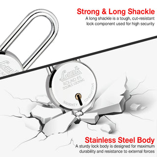 Link 50mm New Round Long Shackle Pack of 1 | 50,000 Key Combinations | Made in India | Double Locking | Steel Body | Iron Lever| 3 Keys for Each Padlock