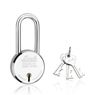Link New Round 65MM Padlock Steel Body Iron Lever Double Locking 3 Silver Keys 1 Lock Made In India