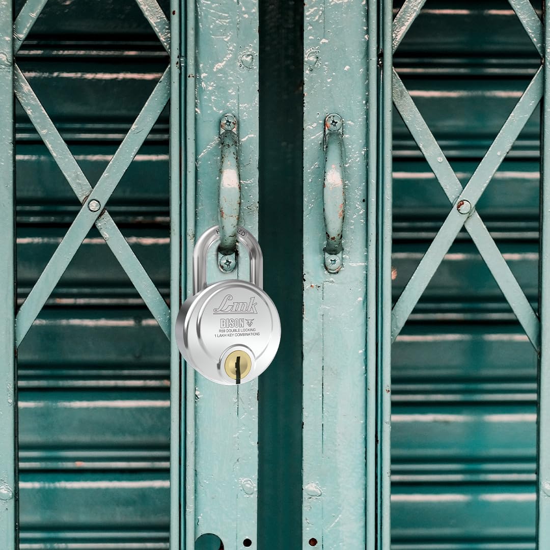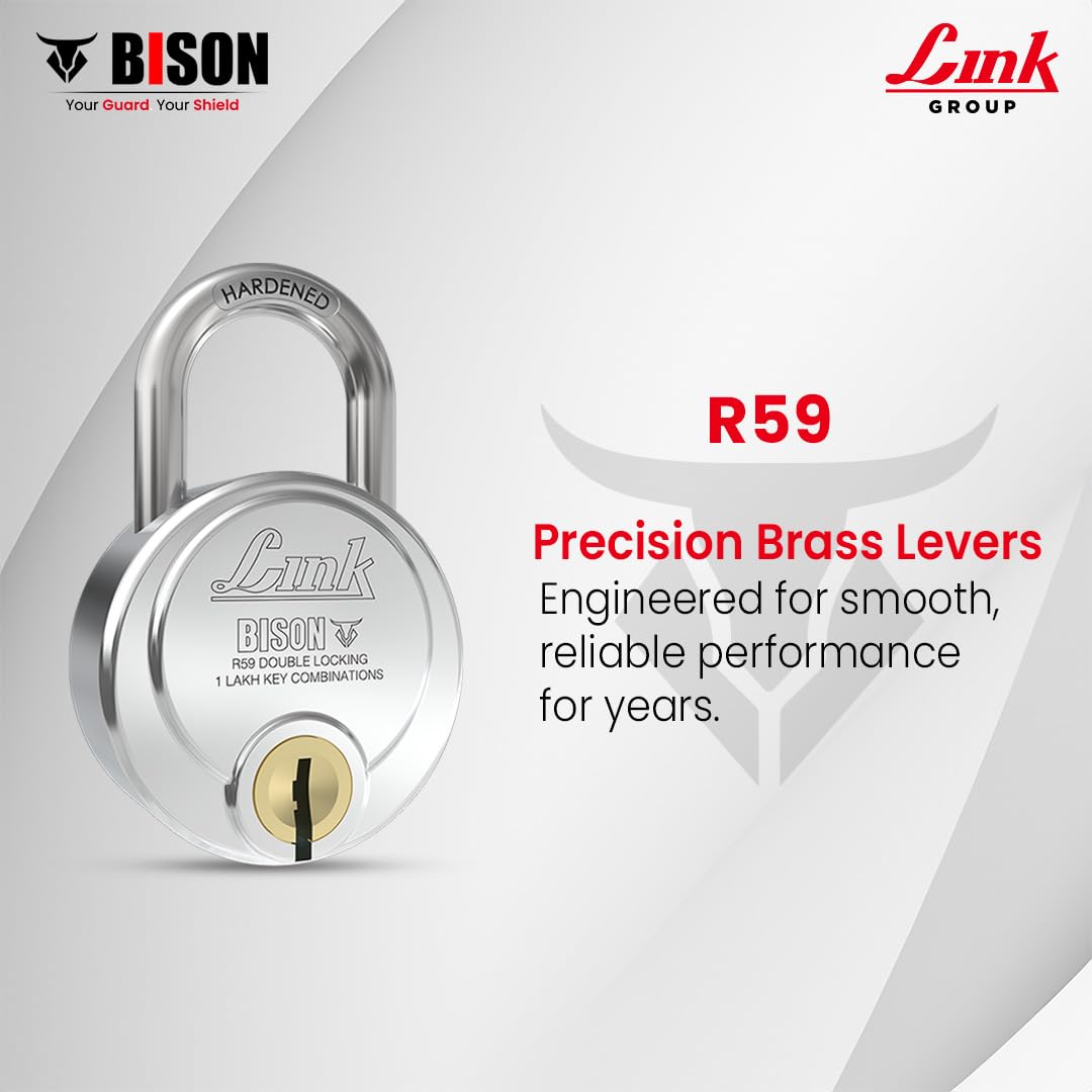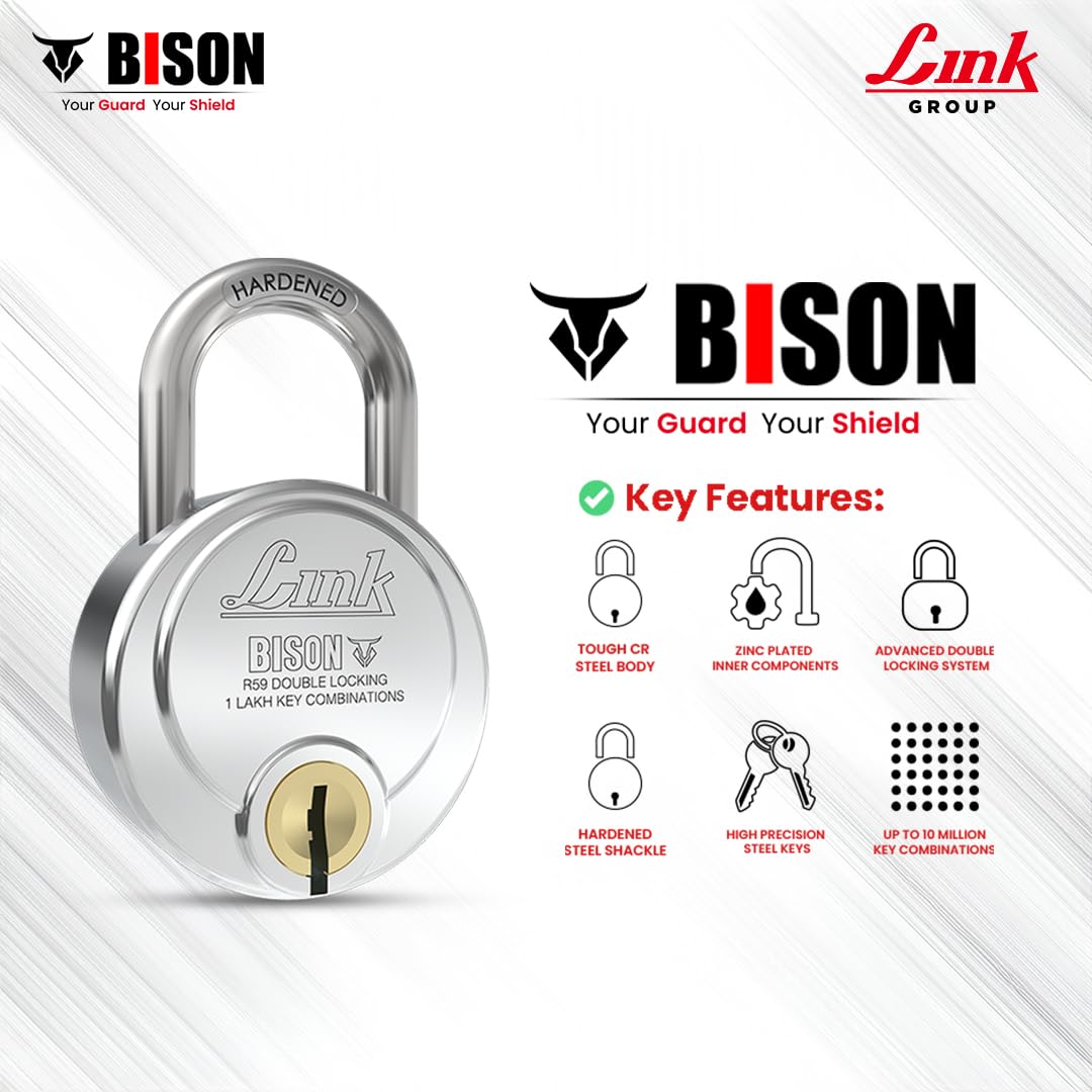 Link Bison 59mm Heavy Duty Padlock | Lock for Home Door, Office, Shop, Travel | Tough CR Body | Hardened Steel Shackle, | Double Locking System | High Precision 4 Keys | 1 Lakh Key Combinations