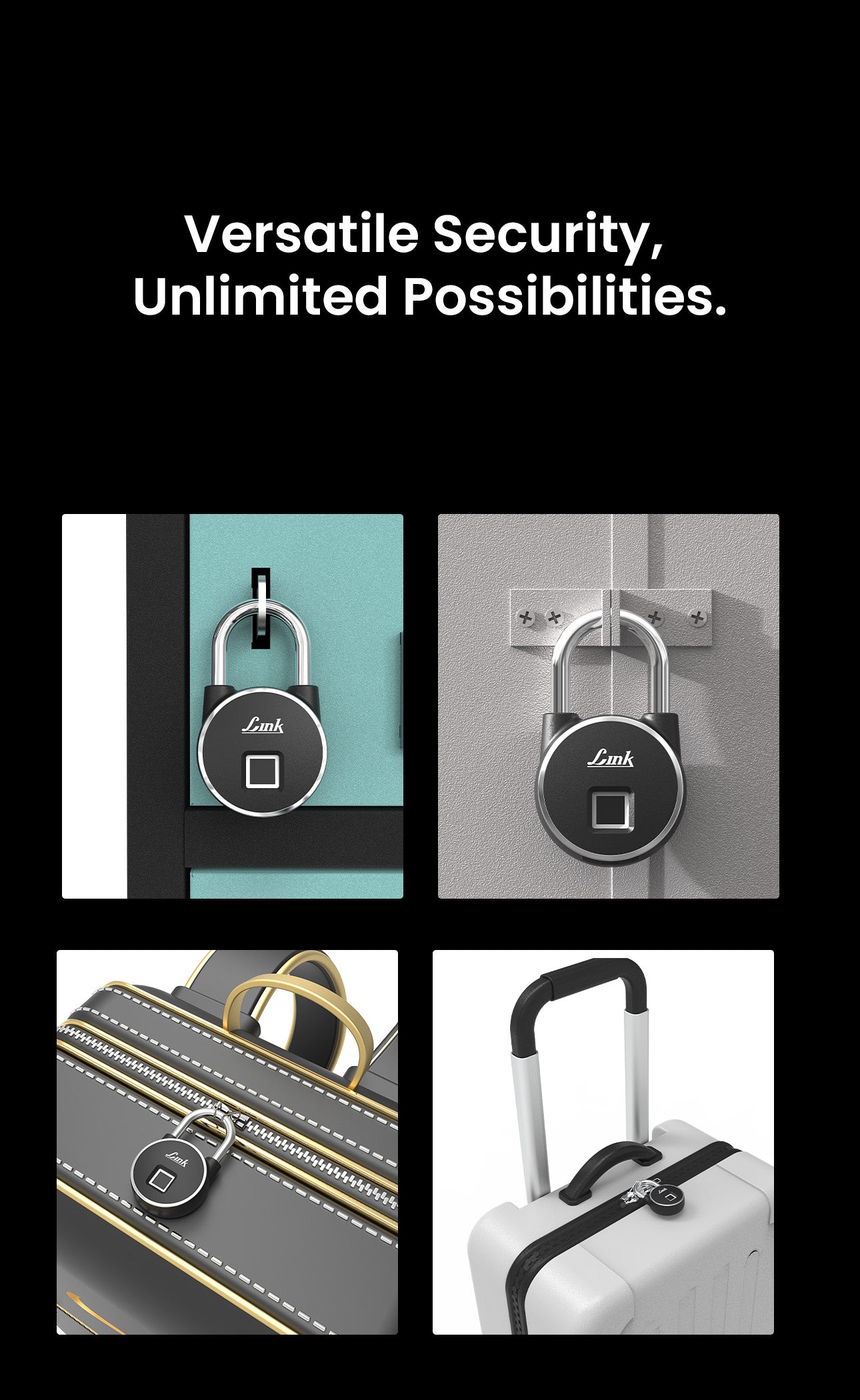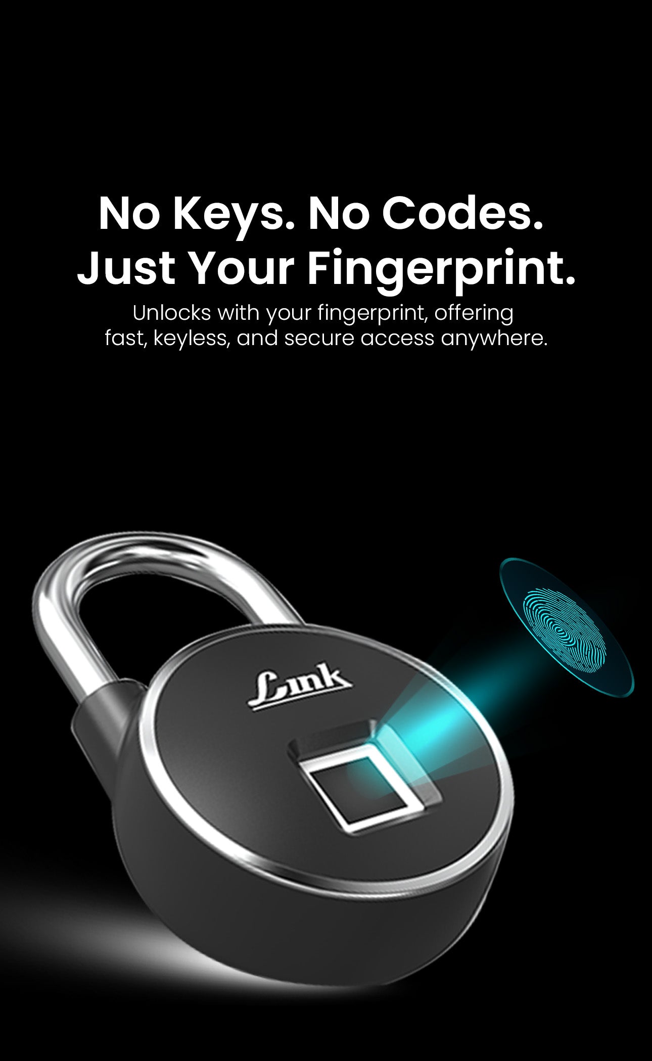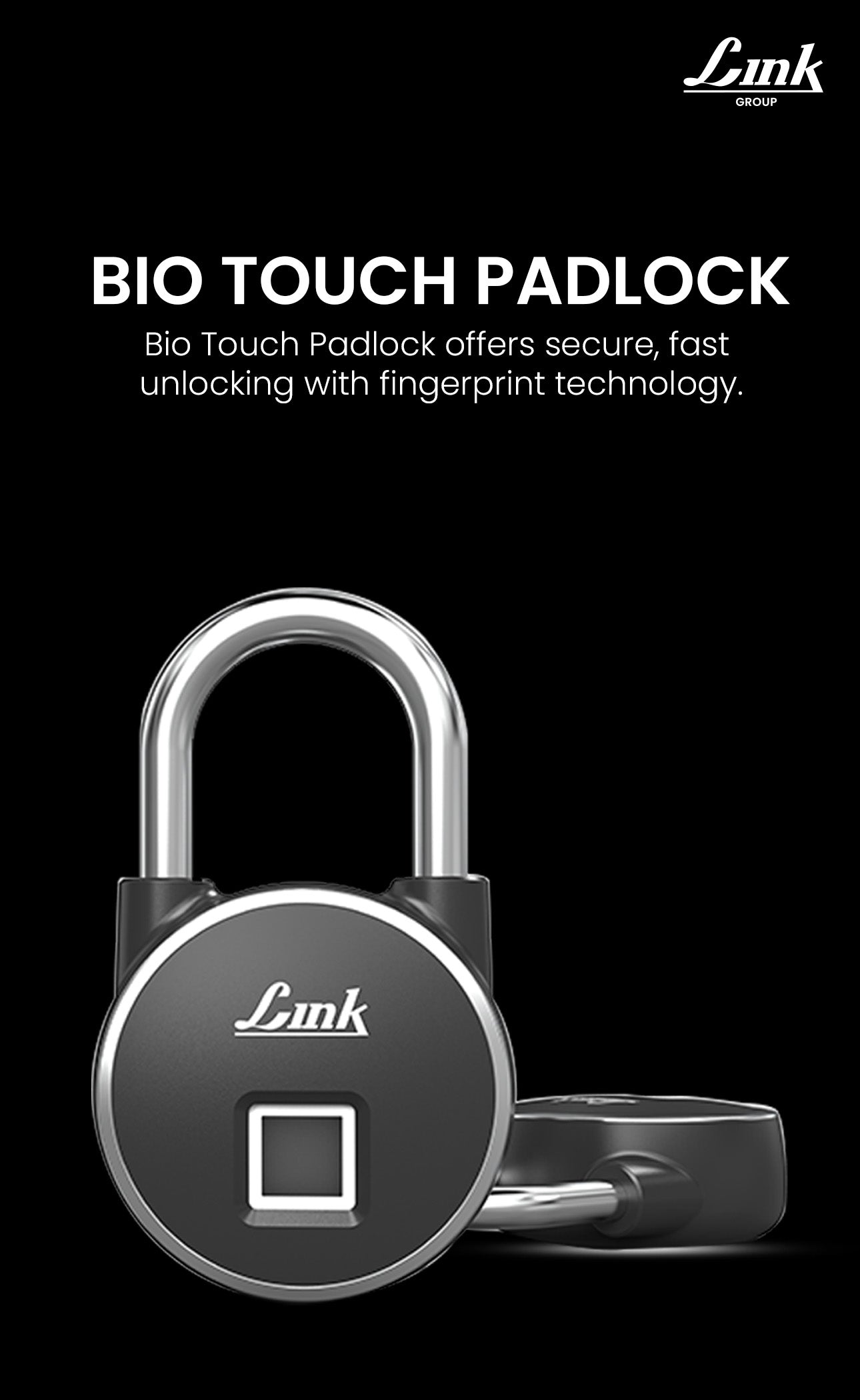 Link Smart Fingerprint Padlock With 2 Way Access Fingerprint & Mobile App Access, Suitable For Bags, Suitcase, Bike, Garage Door, Cabinet, Warehouse Doors and Shutters., Black