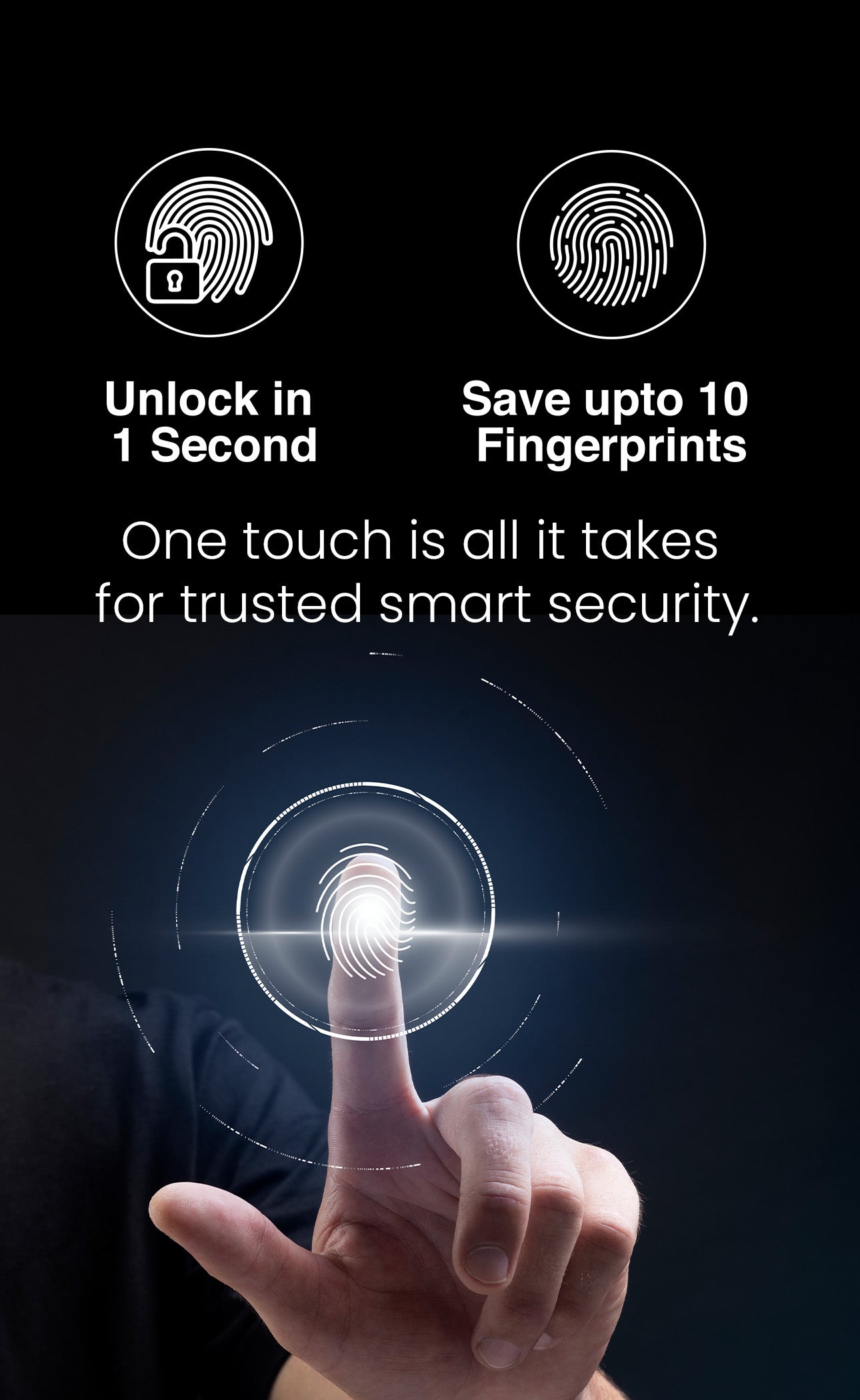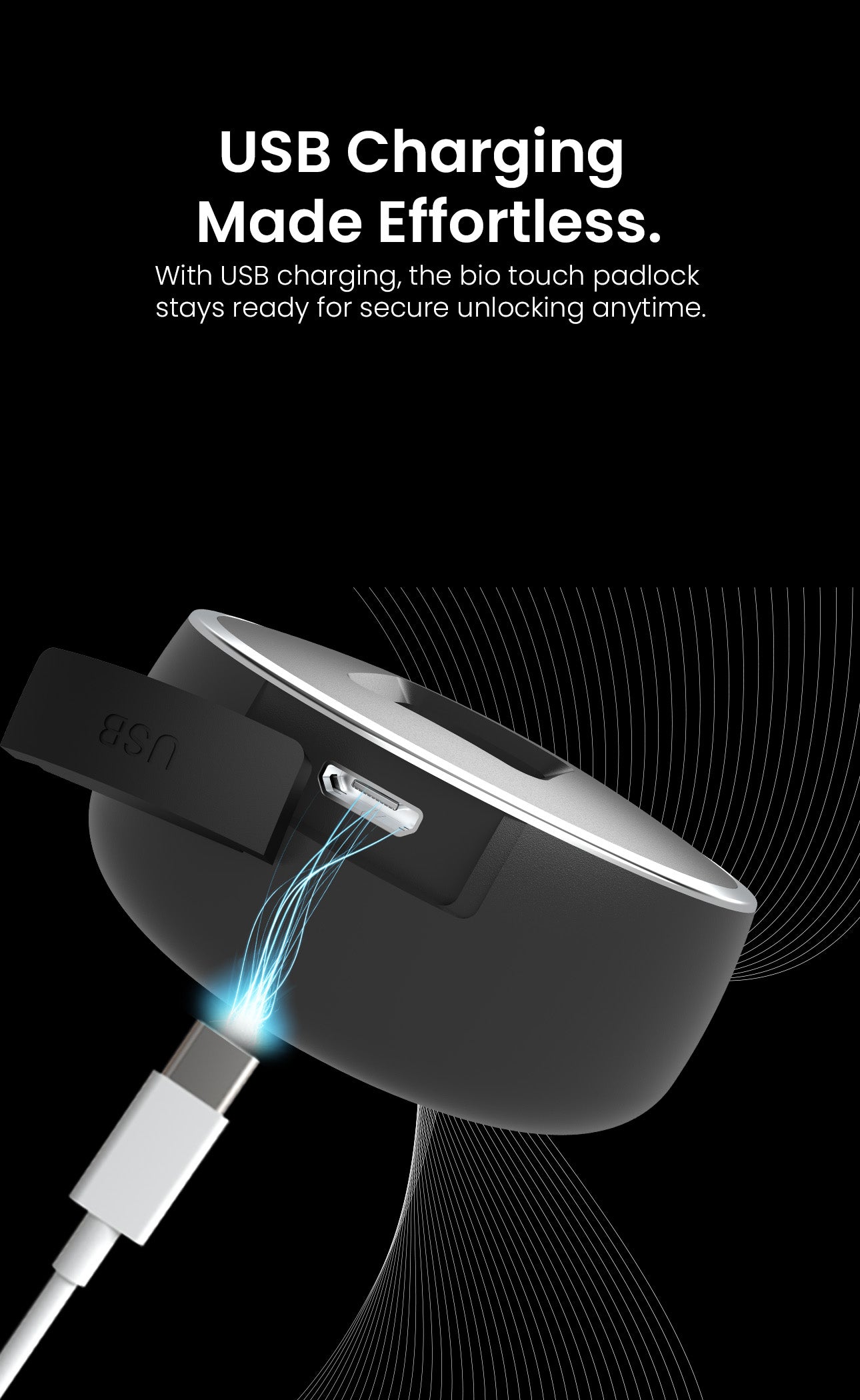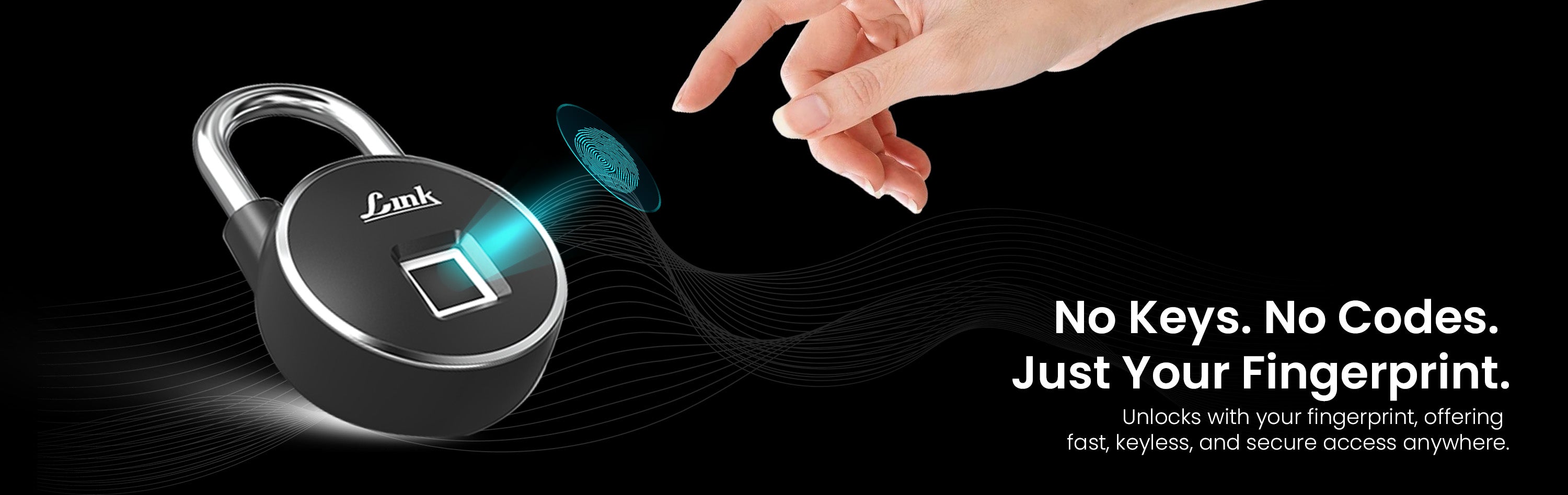 Link Smart Fingerprint Padlock With 2 Way Access Fingerprint & Mobile App Access, Suitable For Bags, Suitcase, Bike, Garage Door, Cabinet, Warehouse Doors and Shutters., Black